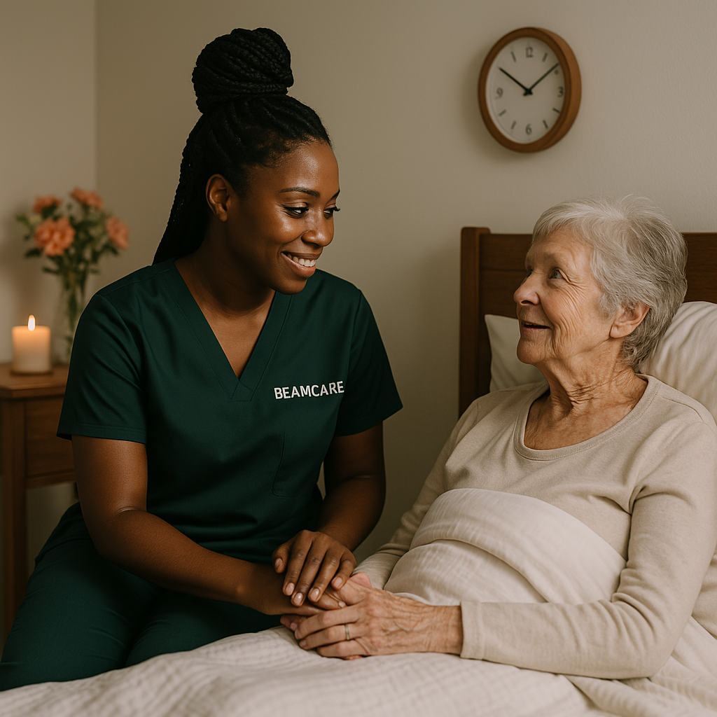 Wanneer genezing niet meer mogelijk is, staat kwaliteit van leven centraal. Bij BeamCare bieden we palliatieve en terminale zorg met aandacht, rust en toewijding. Ons doel is om pijn en ongemak te verlichten, maar ook om nabijheid en menselijke waardigheid te behouden in de laatste levensfase.